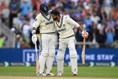 Ravindra Jadeja of India celebrates reaching his century with Washington Sundar during Day Five of the 4th Test vs England […]