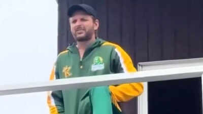 Shahid Afridi watched on as India Champions exited the stadium after refusing to play Pakistan Champions in WCL. The India